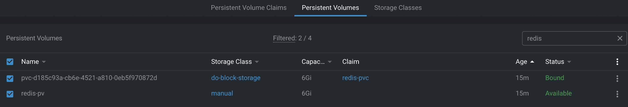 persistentvolumeclaim/redis-pvc createdResult in Lens
